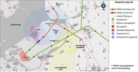 Onderstaande kaarten geven het grondpad weer van de routes bij oostenwind (baan 05) en westenwind (baan 23).